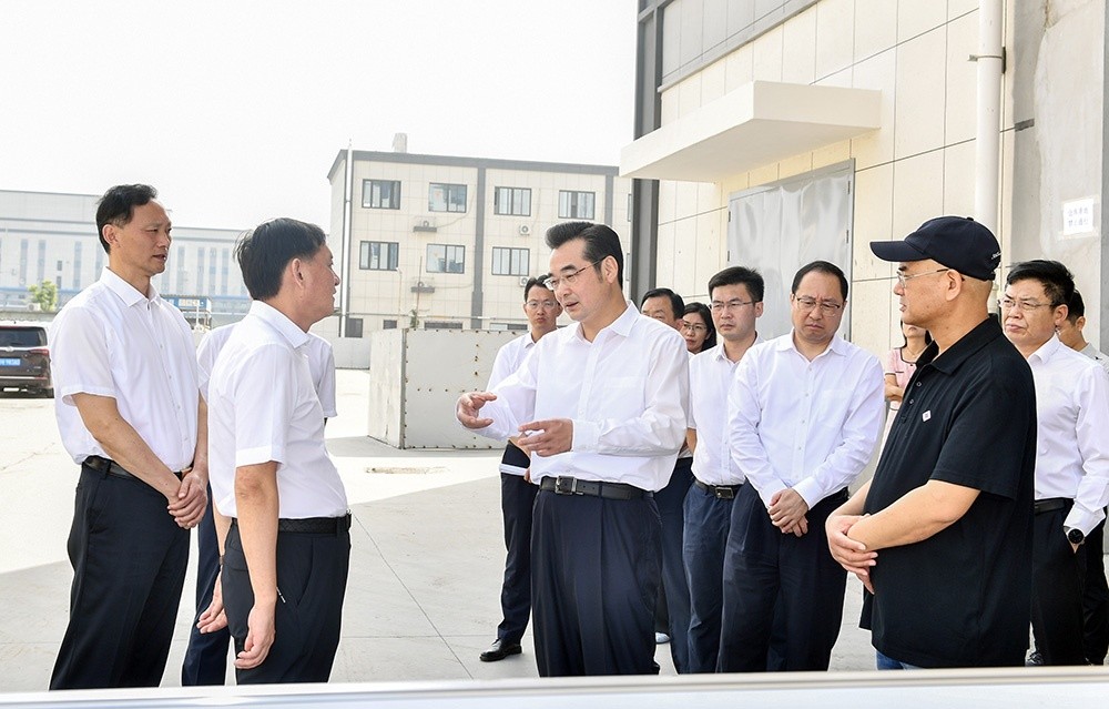 9月7日上午,淮安市委書記史志軍帶隊(duì)到我司江蘇基地調(diào)研,公司沈總裁接待并匯報(bào)工作。在項(xiàng)目建設(shè)現(xiàn)場(chǎng),史書記聽取“年產(chǎn)10萬噸PA6再生差別化纖維項(xiàng)目”總體建設(shè)情況和生產(chǎn)情況介紹,我司再生錦綸“化學(xué)法”生產(chǎn)工藝的突破,是國(guó)內(nèi)首個(gè)采用成套自有技術(shù)的萬噸級(jí)化學(xué)回收法再生錦綸纖維工程案例。